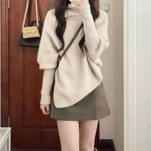 30代大人可愛い服タートルネックミニスカートセットアップ
