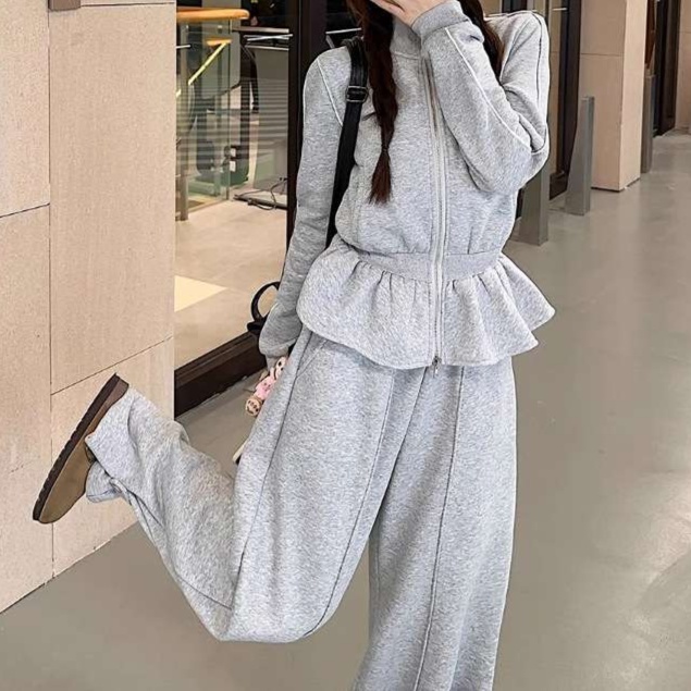 リラックスタイムを可愛く彩るフリフリ装飾が施されたスウェット上下セットです。