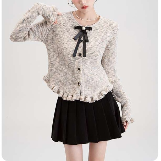 優しい色合いのニット素材が女性らしさを引き立て、カジュアルな装いにもエレガントさをプラスしてくれます。