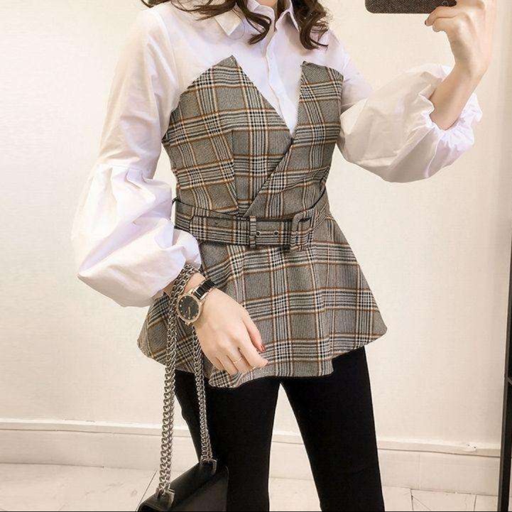 40代の可愛い服ブランドチェック柄レイヤードシャツ