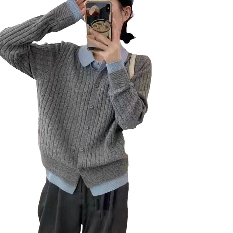 襟付きシャツとケーブル編みベストが一体になったツーインワンタイプで、一枚でこなれた着こなしが完成。
