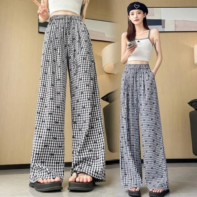大人かわいい服にぴったりなギンガムチェック柄のワイドパンツです。