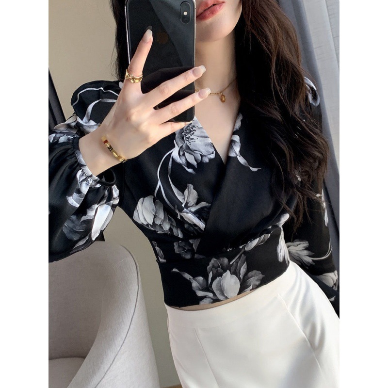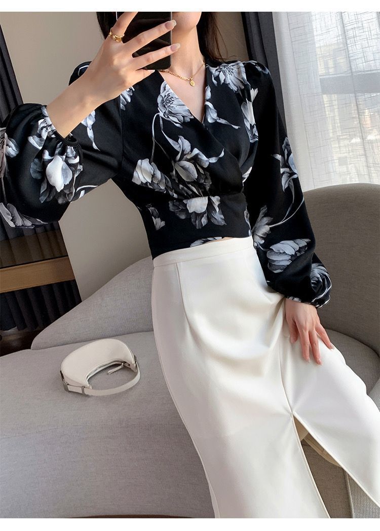 深めのブイネックとカシュクールデザインが女性らしさを引き立て、バルーン袖が二の腕を華奢に見せてくれます。