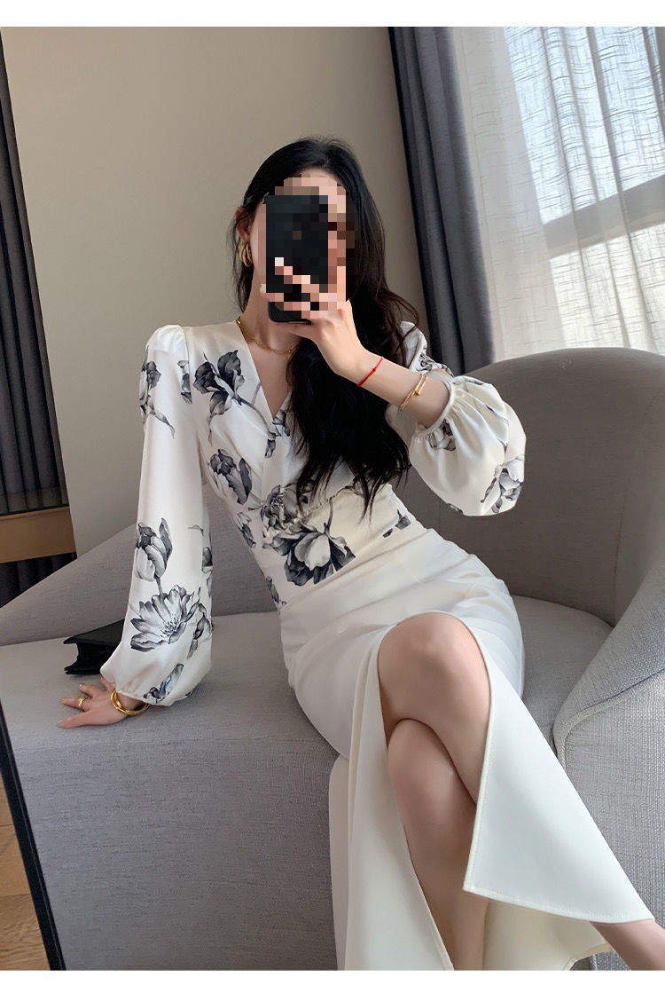 大ぶりで上品な花柄プリントが女性らしい華やかさと洗練された印象を演出