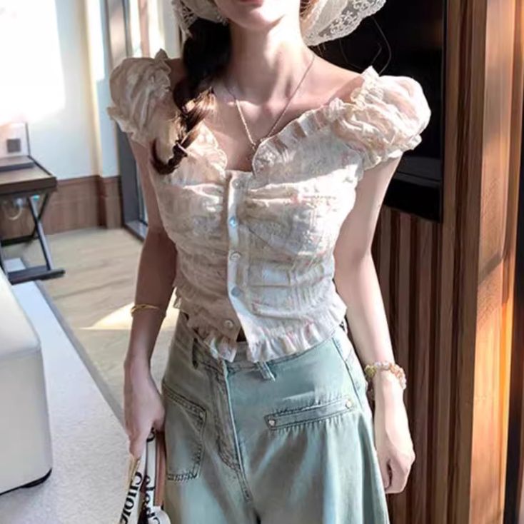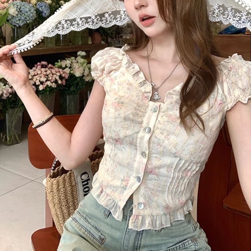 大人かわいい服にぴったりな繊細な花柄が魅力的なトップスです。