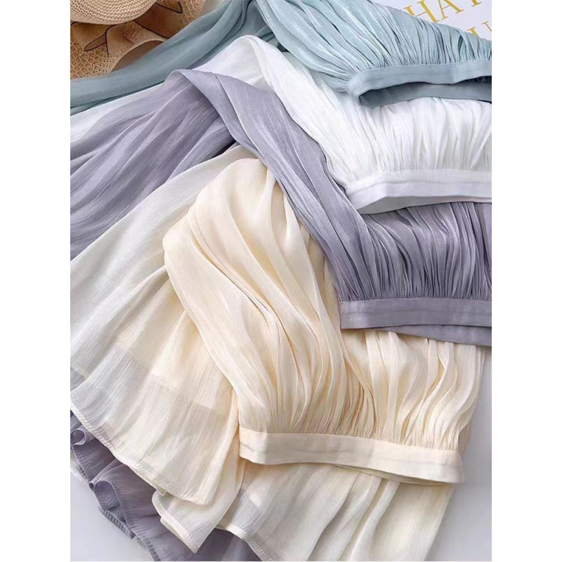 繊細なプリーツ加工を施したチュール素材のロングスカートです。