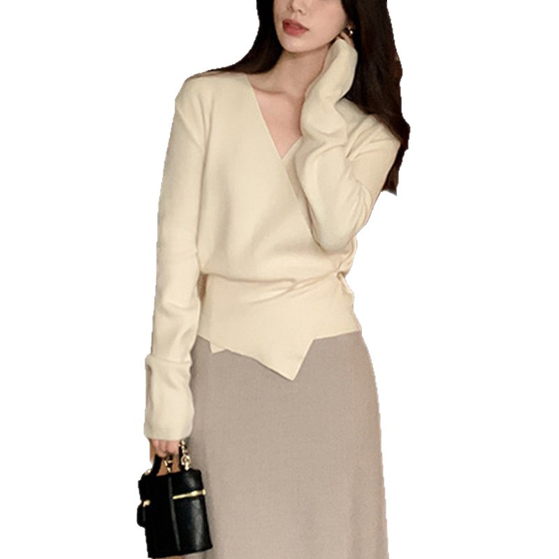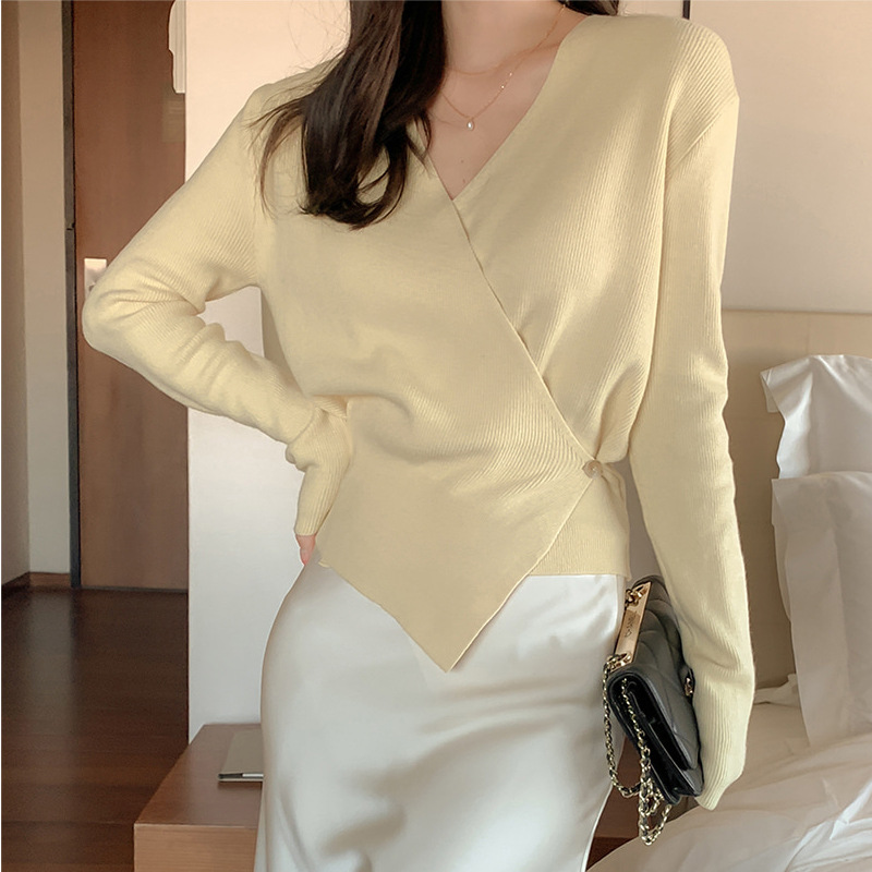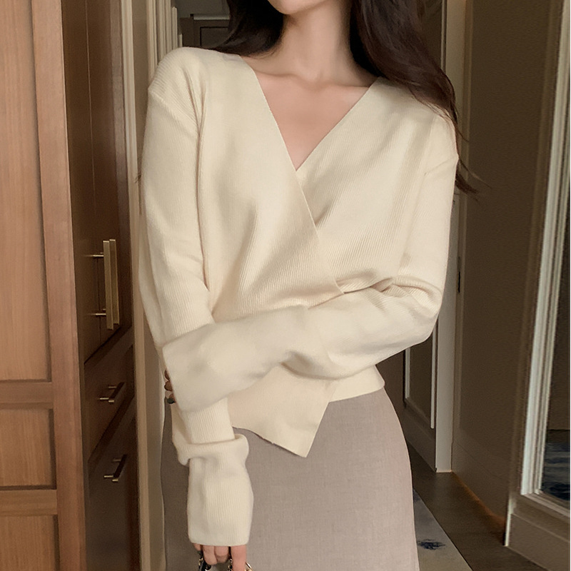 女性らしい深めのブイネックラインが魅力のカシュクールデザインのトップスです。