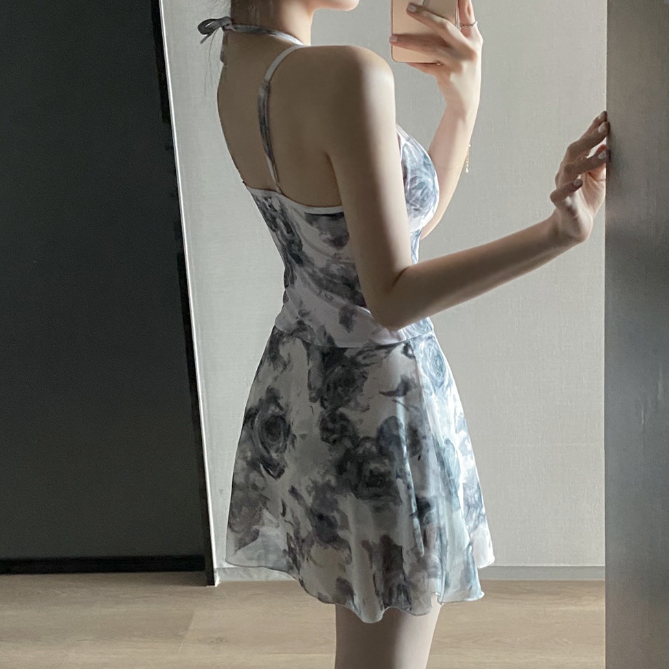 ホルターネックのデザインが華奢な肩まわりを演出し、女性らしさを引き立てます。