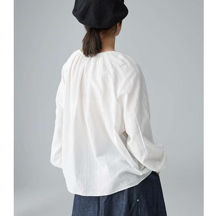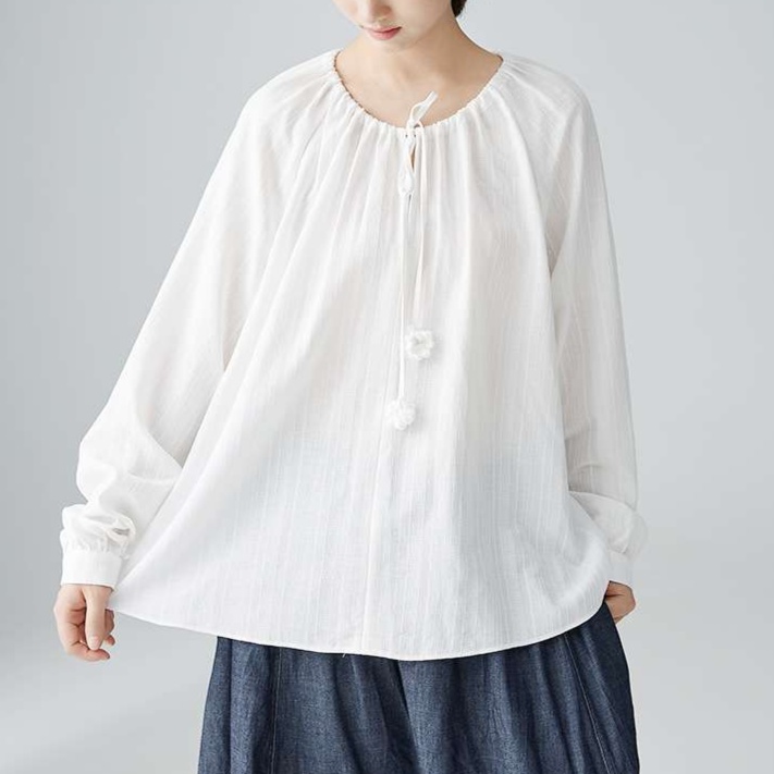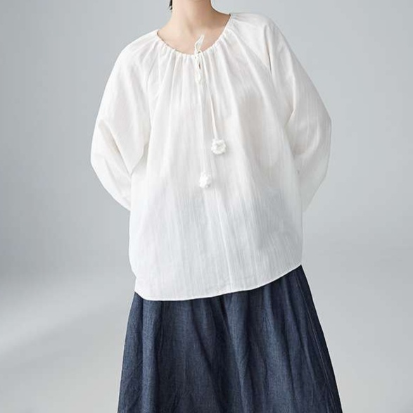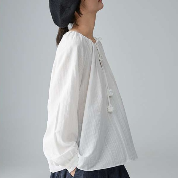 繊細な織りのリネン素材で作られた、大人かわいい服の定番トップス。