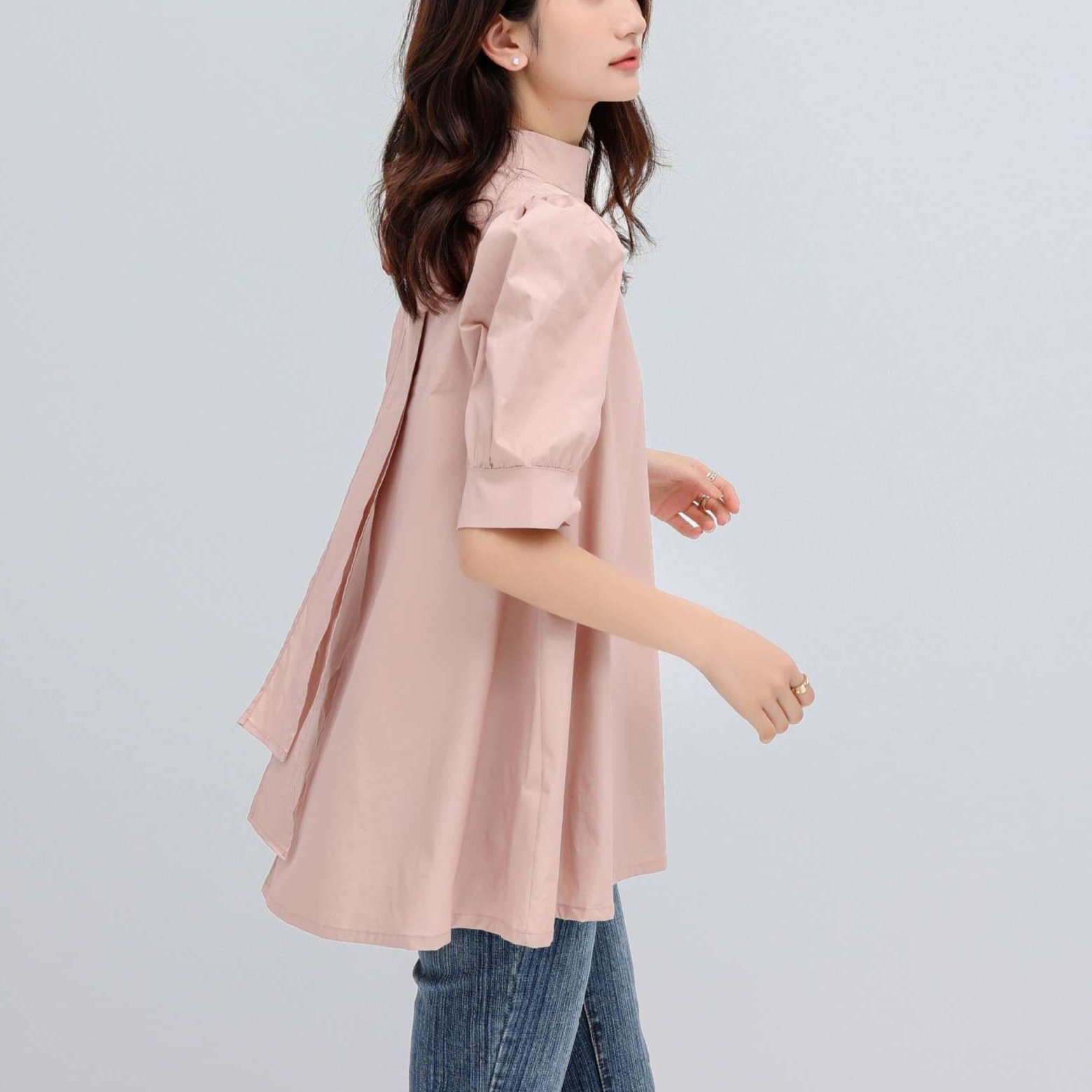 後ろ姿まで抜かりなく、大人かわいい印象を与えるリボン付きバックスタイルブラウス。