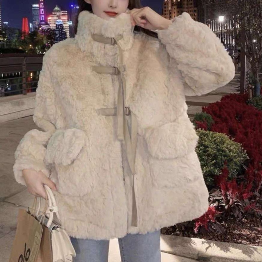 ふわふわの人工ファーを贅沢に使用し、暖かさと上質な質感を両立した高級感のある仕上がり