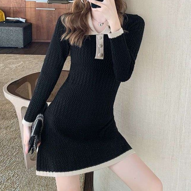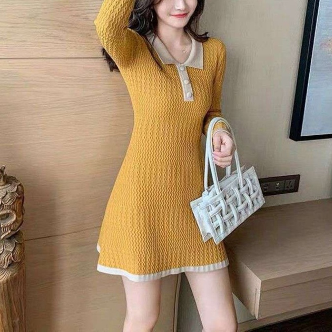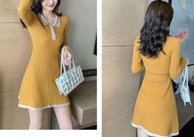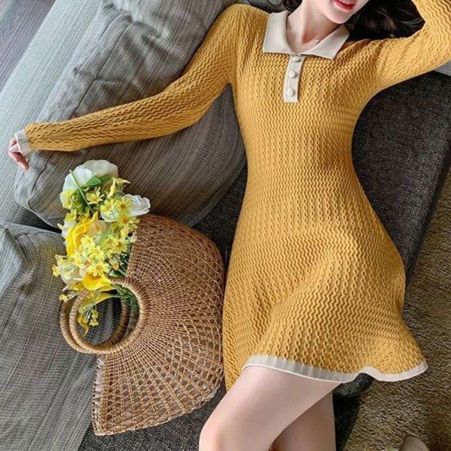 細やかな編み目が魅力のニットワンピース。襟元のポロデザインが大人の可愛らしさを引き立てる。体のラインを美しく見せるフィット感に加え、裾のフレアが女性らしさを演出。室内でのリラックスタイムやお出かけシーンにもぴったりな一着で、さまざまなスタイルに対応。大人の女性にふさわしい洗練された印象を与えるワンピースです。
