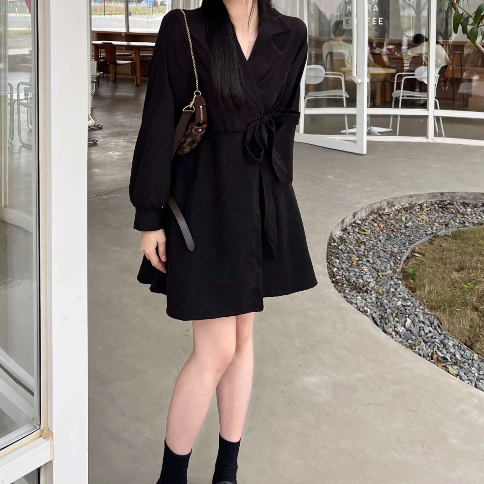 しっかりとした生地感で、オフィスからお出かけまで幅広く着回せる実用的なワンピースです。