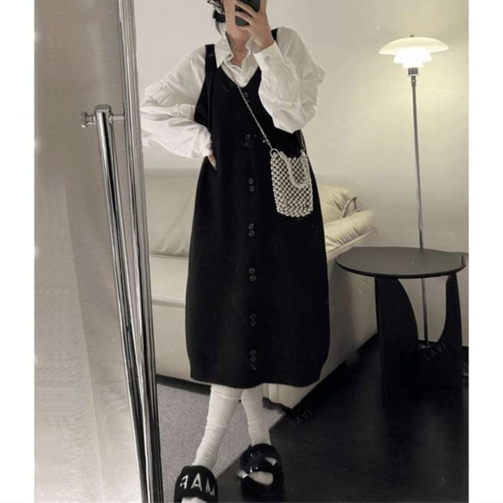 ゆったりとしたシルエットが抜け感を演出する、大人かわいいジャンパースカートワンピース。