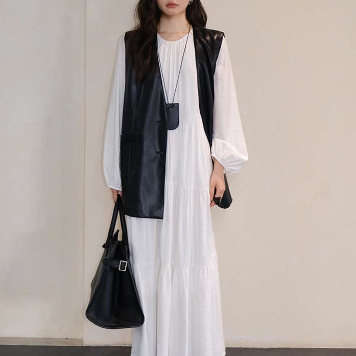 ゆったりとした袖とウエストのギャザーが、優雅で女性らしい雰囲気を引き立てます。