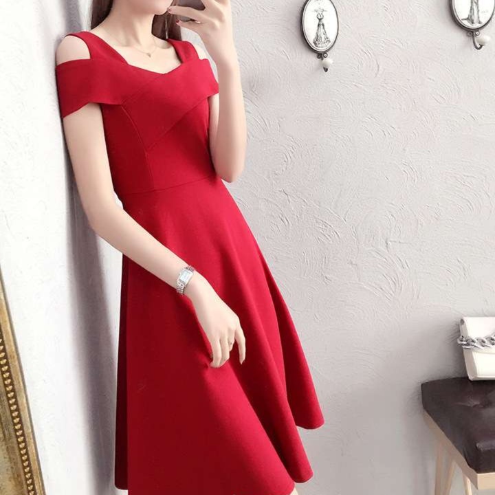 エレガントな雰囲気を醸し出すワンピース。肩を華奢に見せるデザインと、膝上までのフレアスカートが絶妙に調和し、上品な印象を与える。シンプルながらも洗練されたシルエットで、大人かわいいスタイルを楽しむことができる。特別な日のデートや、カジュアルなパーティーにもぴったりな一着。自信を持って着こなしたい。