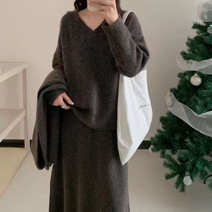 トップスとボトムスの絶妙なバランスが、シンプルでありながらも上品な雰囲気を引き立て、ふんわりとしたシルエットが女性らしさを自然に演出します。