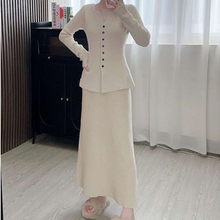柔らかなニット素材で仕立てた、大人かわいい印象のセットアップ。