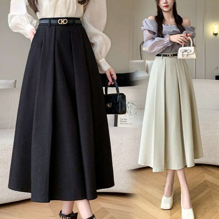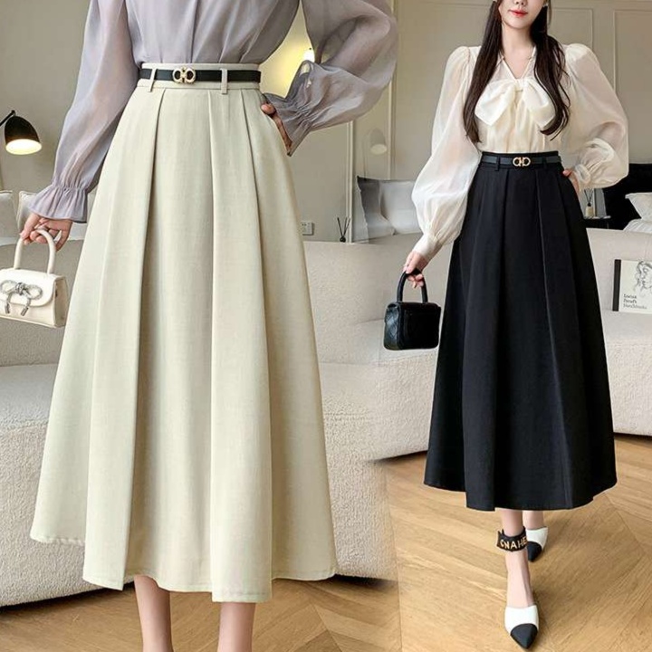 優雅に揺れるプリーツと上品な丈感が女性らしさを引き立てます。