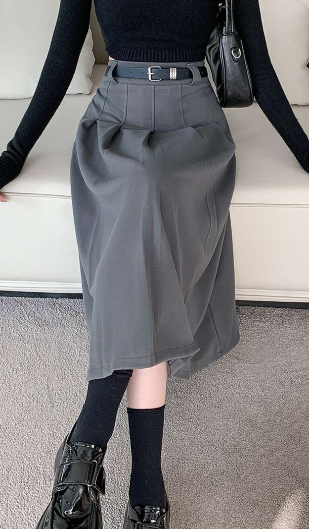 ミモレ丈のフレアシルエットで、歩くたびに揺れる美しいラインが魅力です。