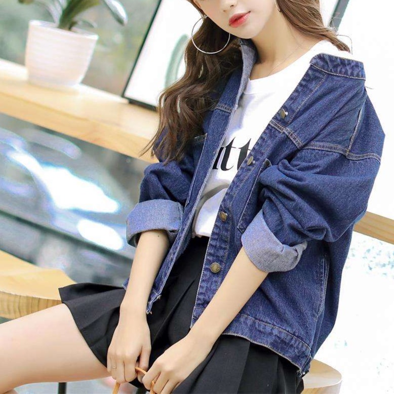 大人かわいい服の定番、オーバーサイズのデニムジャケット。