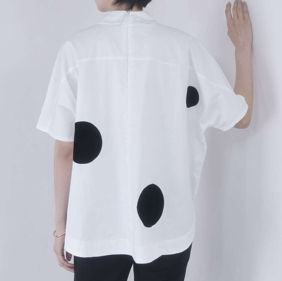 きちんと感のある襟付きデザインながら、カジュアルな水玉柄とのバランスが絶妙で、様々なシーンで活躍