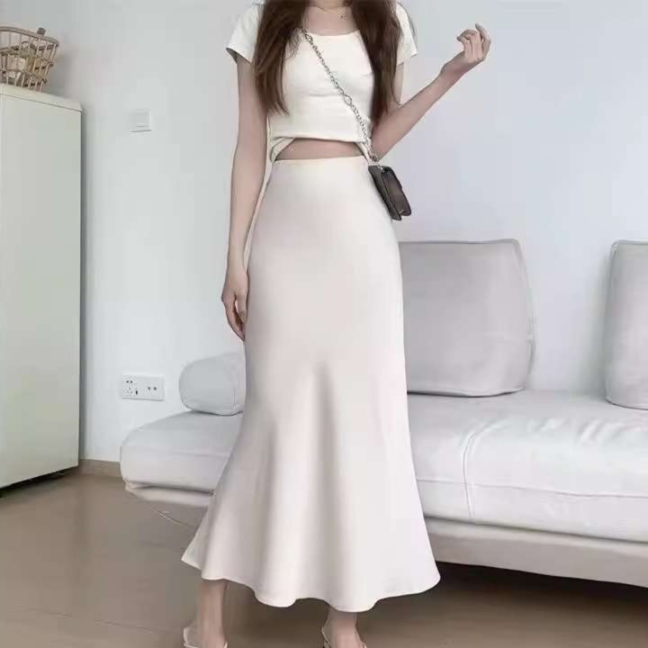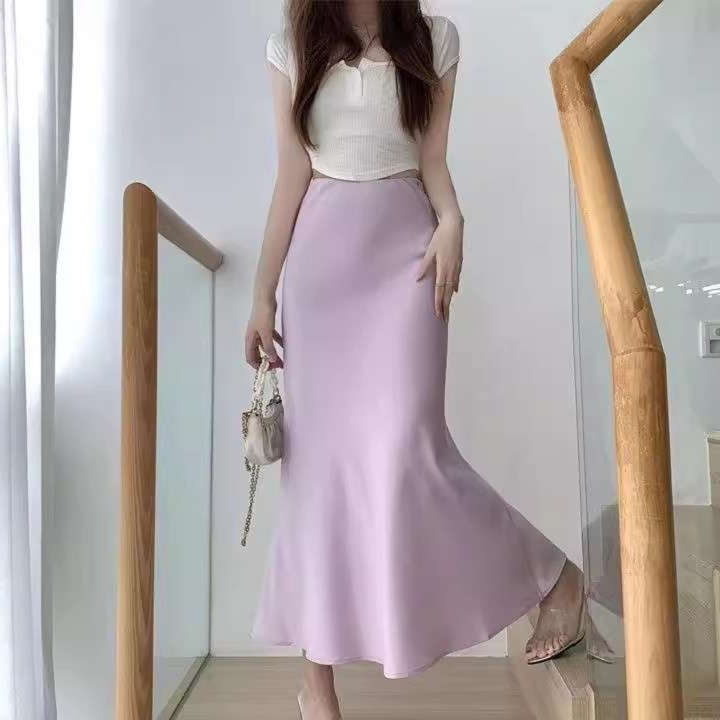 美しい曲線を描くマーメイドラインが、大人かわいいスタイルを引き立てるロングスカート。