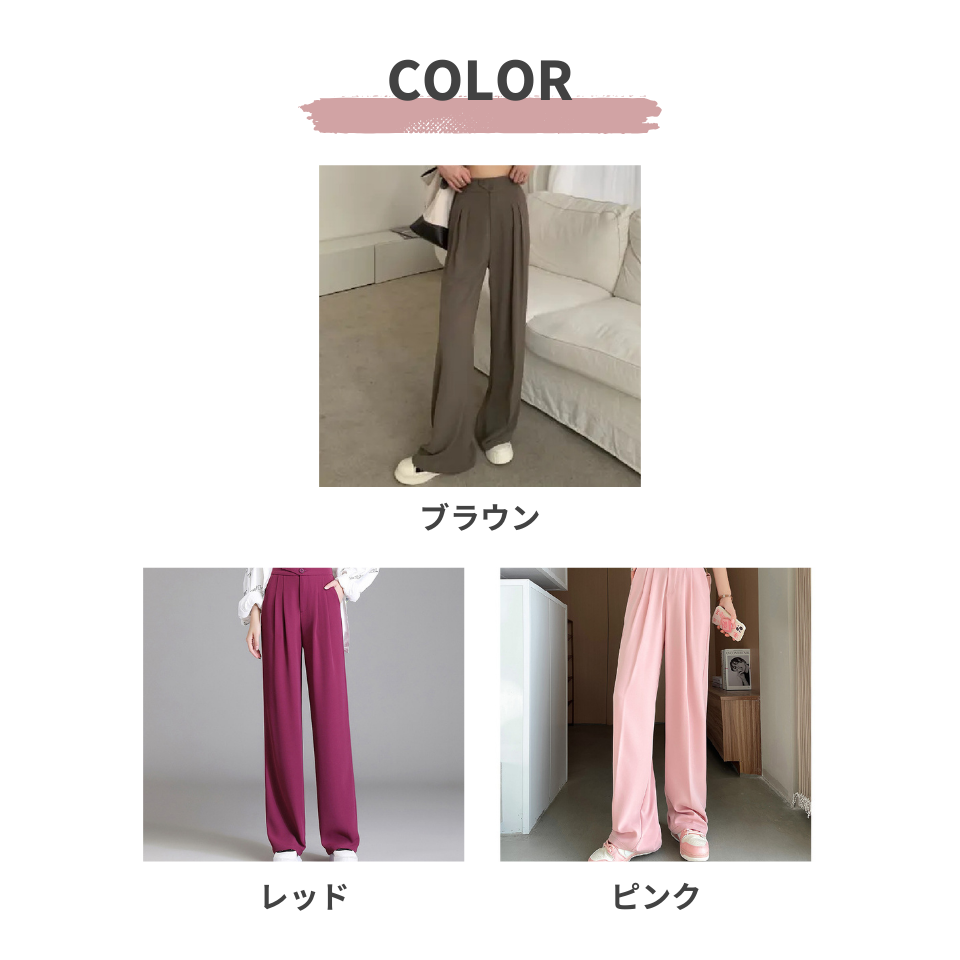 自然な落ち感とロング丈が脚長効果を演出し、さまざまなトップスと合わせやすいパンツです。